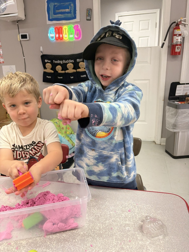 This week were sorting by colors, making playdoh letters, and doing fun activities with feathers🩵