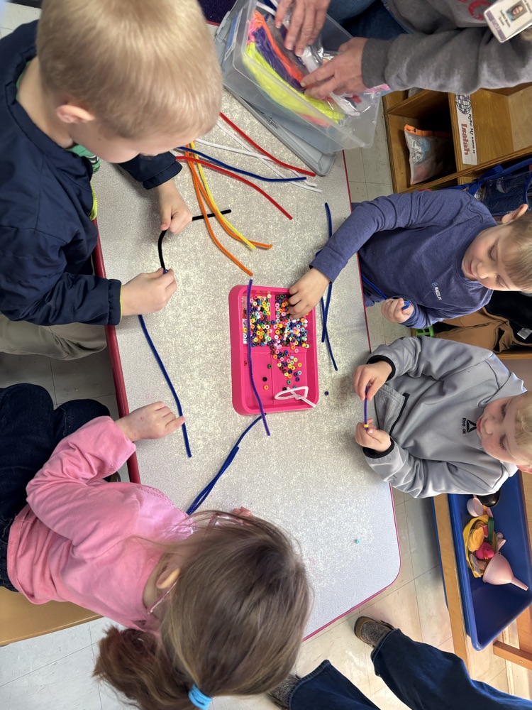 Using fine motor skills with beads making candy cane ornaments and decorating gingerbread 🎄