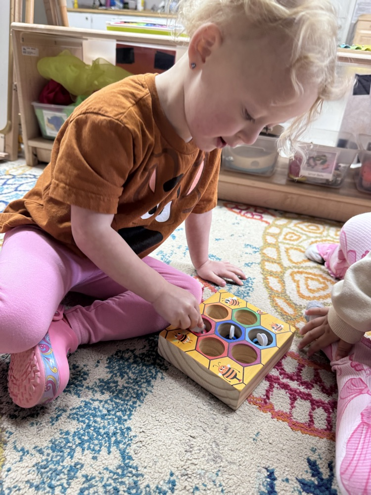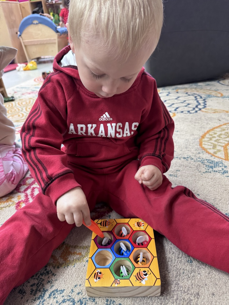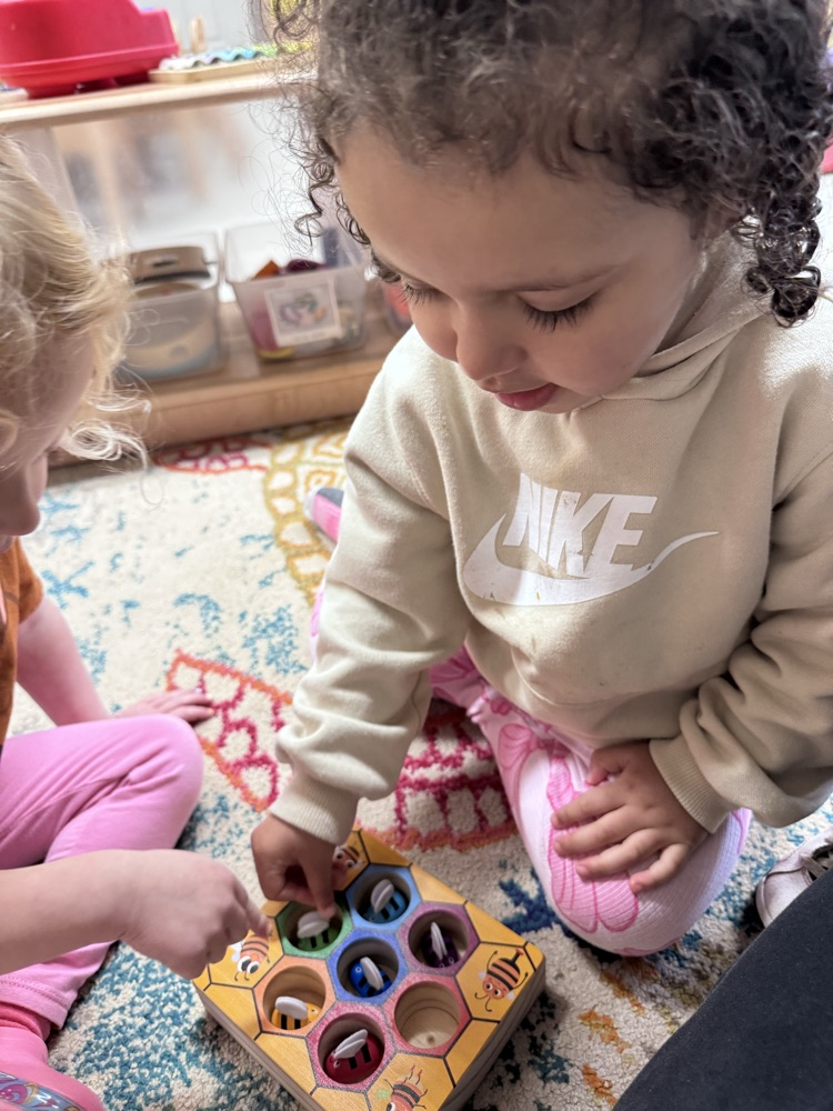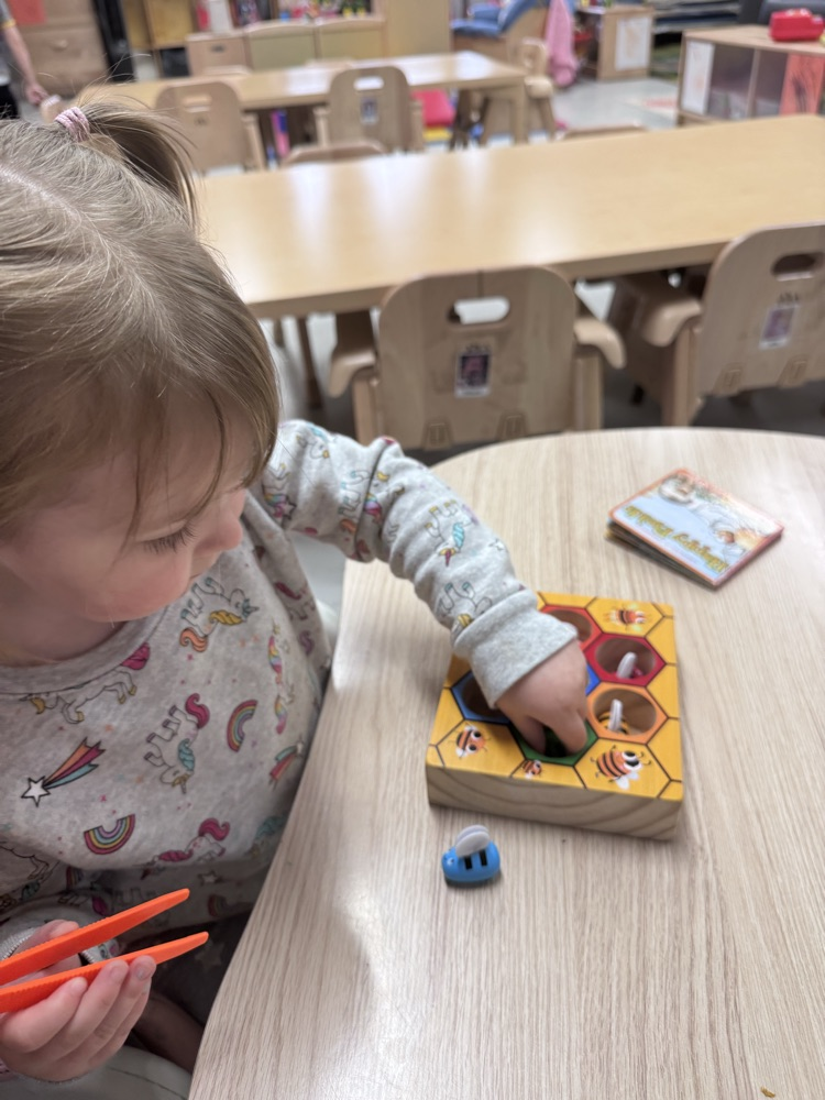 This week, we focused on bees and ants—and had so much fun exploring how these tiny creatures live and work. The children learned how bees do their special waggle dance to show other bees where to find nectar 🌼, practiced color sorting with our busy little “bees,” and even went on a playground adventure to search for ant hills!