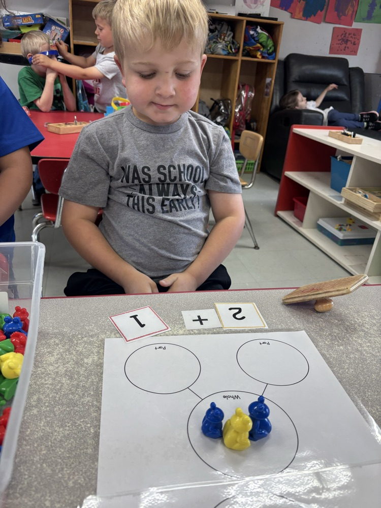 In preschool, we are working on letter sounds and learning what number bonds are!